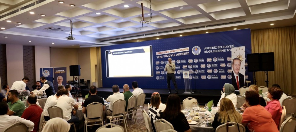 Bir otelin salonunda düzenlenen toplantıya AK Parti Mersin Milletvekili Ali Kıratlı, AK Parti Mersin İl Başkanı Âdem Aldemir, AK Parti Akdeniz İlçe Başkanı Emin Genç, il ve ilçe yöneticileri, kadın ve gençlik kolları başkan ve yöneticileri ile çok sayıda partili katıldı. “Türkiye’nin Yeni Yüzyılında Yeni Yüzüyle Akdeniz” şiarıyla düzenlenen buluşmada salonu dolduran partililere hitap eden Akdeniz Belediye Başkanı Mustafa Gültak; kadınlar, gençler başta olmak üzere Akdeniz’de yaşayan vatandaşların yaşamına dokunan, ilçeyi değiştiren hizmet ve projelerden bahsetti.