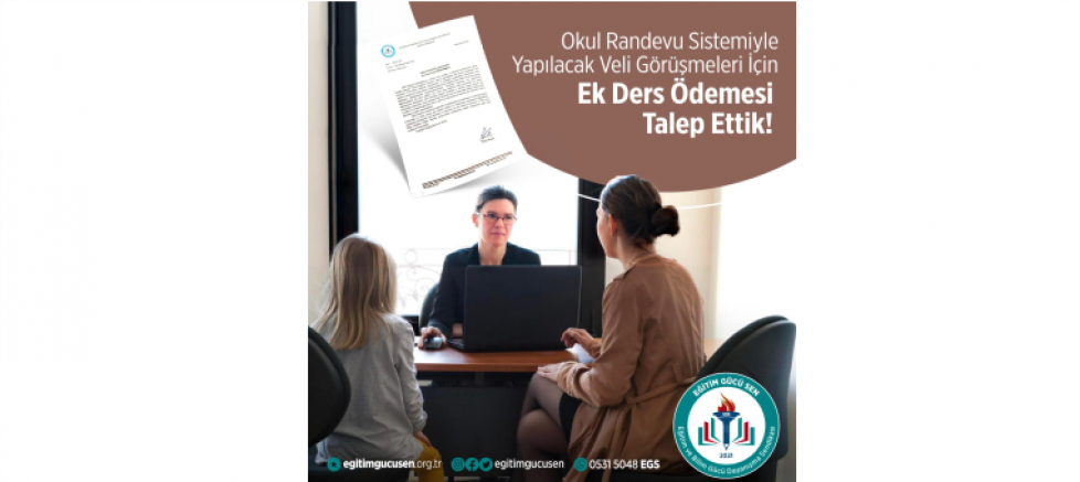 Sendika, sistemle öğretmenlerin boş saatlerine ve okul çıkış saatlerine denk gelen sürelerde yapılan veli görüşmelerinin, öğretmenlerin dinlenme, ders hazırlığı yapma ve ailelerine zaman ayırma sürelerini olumsuz etkilediğini belirtmiştir. EGS, Anayasa'nın 18. maddesinde yer alan "Hiç kimse zorla çalıştırılamaz. Angarya yasaktır." hükmünü hatırlatarak, bu görüşmelerin öğretmenlere angarya oluşturduğunu ve bu görevler için öğretmenlere ücret ödenmesi gerektiğini vurgulamıştır.