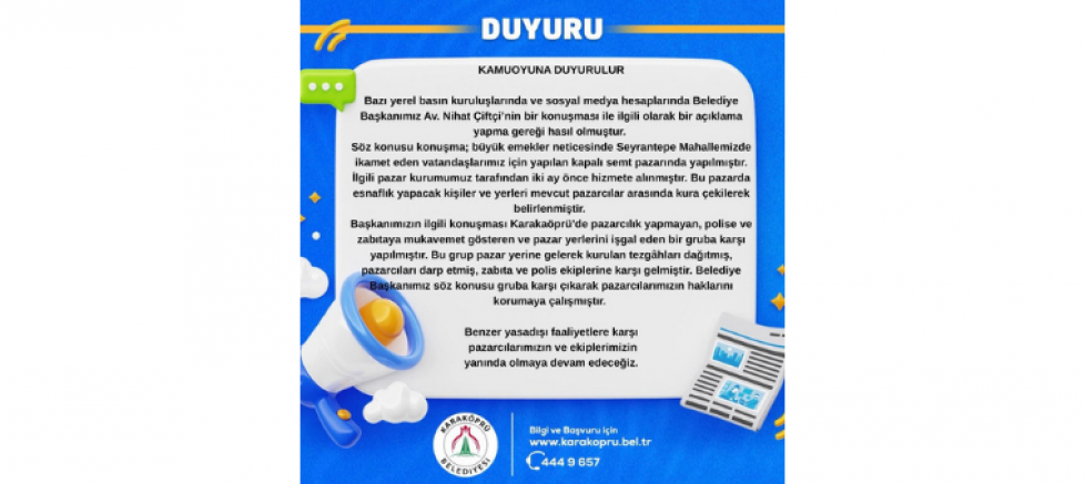 Karaköprü Belediyesi’nin yayımladığı son açıklama, Cumhuriyet Halk Partisi Şanlıurfa İl Başkanı Ferhat Karadağ tarafından üzüntüyle karşılandı. Belediyenin pazarcı esnafına ilişkin ifadelerinin samimiyetten uzak olduğunu belirten Karadağ, kura sürecinin şeffaflığına dair ciddi soru işaretlerine dikkat çekti.