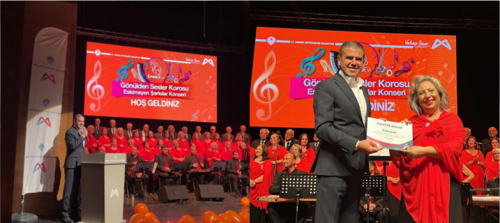 Cumhuriyet Halk Partisi (CHP) Mezitli Belediye Başkan Adayı Ahmet Serkan Tuncer, Büyükşehir Belediye Başkanı Vahap Seçer ile birlikte Büyükşehir’in Emekli Evi’nden faydalanan üyelerden oluşan Gönülden Sesler Korosu’nun ‘Eskimeyen Şarkılar Konseri’ne katıldı. Konseri dinleyenler arasında; CHP Mezitli İlçe Başkanı Ulaş Yılmaz, Cumhuriyet Halk Partisi (CHP) Gençlik Kolları Genel Başkan Yardımcısı İzzet Kırılmaz, Büyükşehir Belediyesi bürokratları, Emekli Evi üyeleri ile sanatseverler de yer aldı.